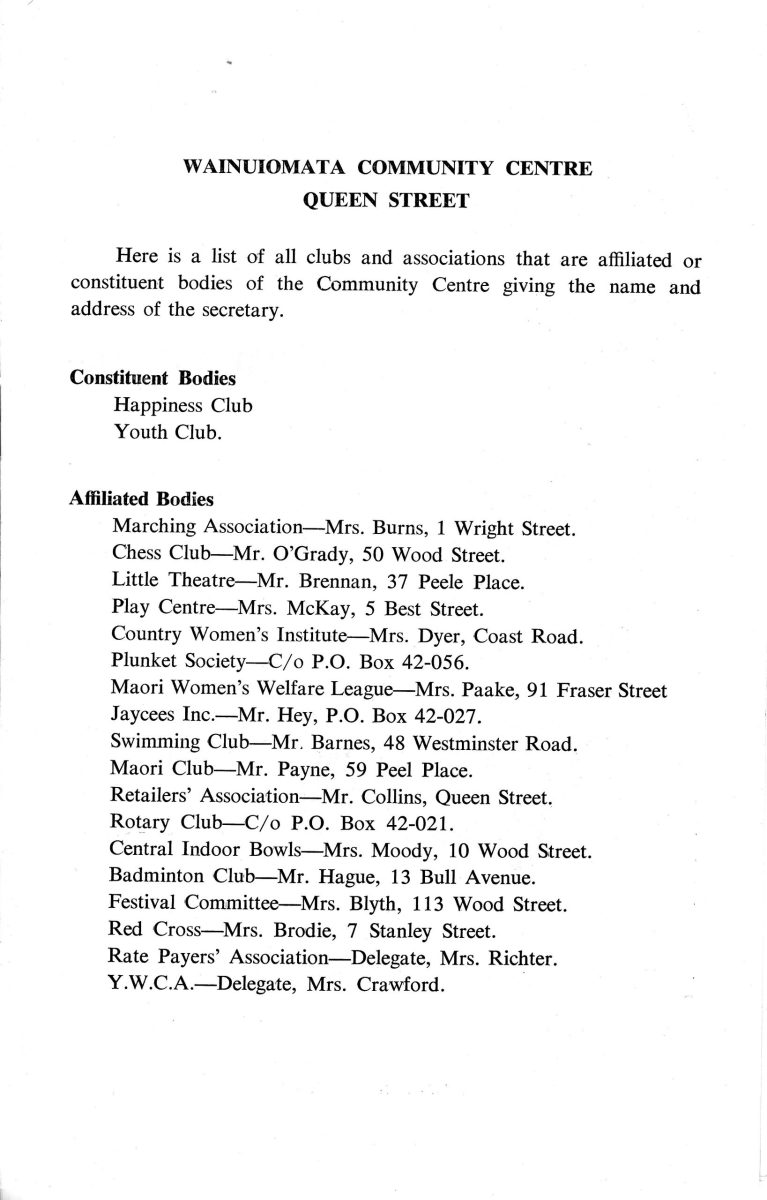 | Venue: | Wainuiomata Community Centre |